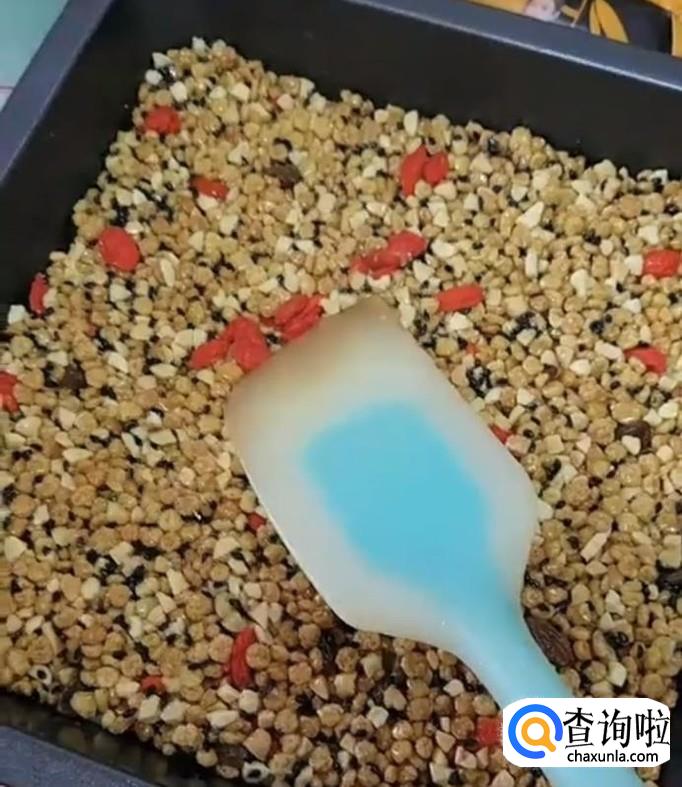 再加点枸杞子,将搅拌好的玉米酥倒入磨具内,可以压平,也可以用擀面杖擀平,倒出来就做好了。
