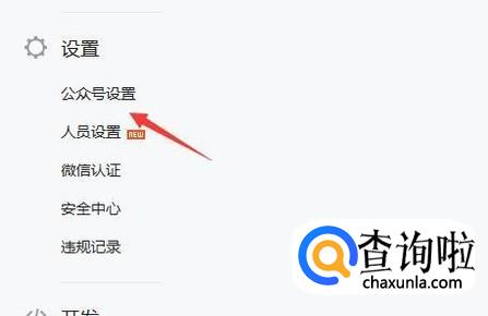 接着往下拖动页面,接着在设置中找到公众号设置,这时候右侧就会出现相关的一些内容了。