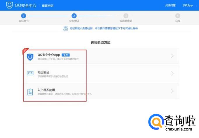 选择验证方式,可以通过手机号或安全中心App验证身份。