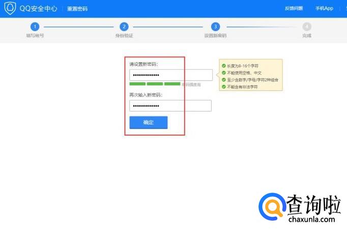 验证通过后,就能设置新密码了,设置好后点击确定按钮。