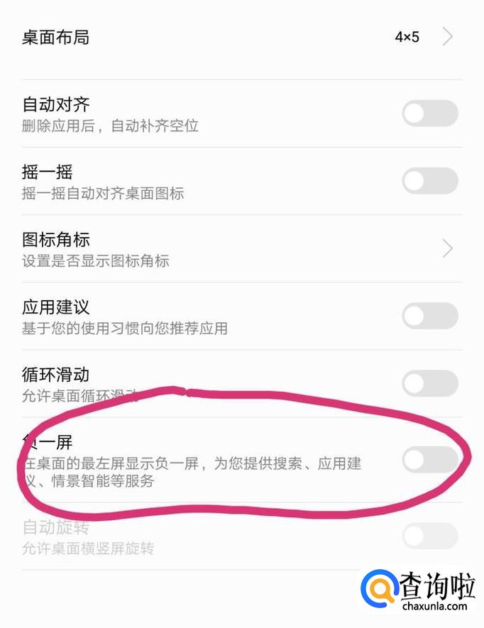 找到右下角的“负一屏”按钮,点击关闭负一屏功能。此时按钮变成灰色。