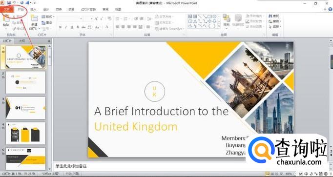 打开需要打印的ppt,在页面上方点击“文件”。