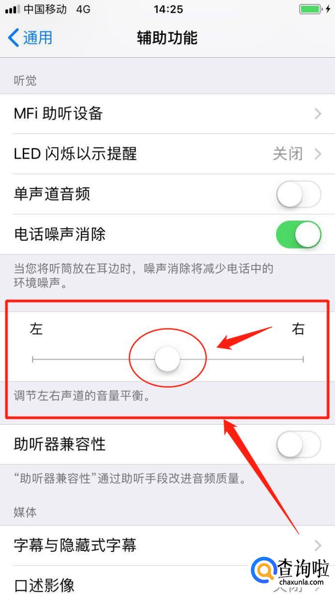 将左右声道的平衡值设置在中间,到这一步就可以了,手机就调节好了。