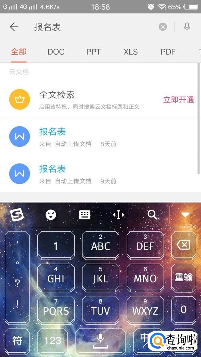 点击后,跳转到搜索界面,开始识别手机中的word文档,然后找到自己想要打开的文档,点击后便可以打开。