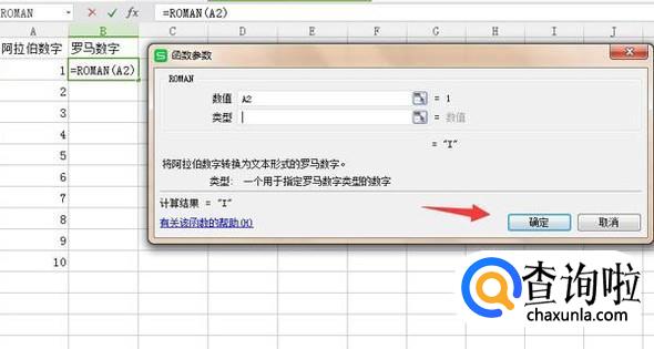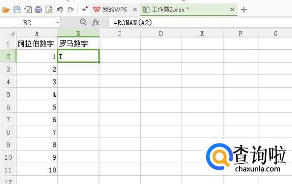 这时,我们可以看到单元格B2返回罗马数字“I”。