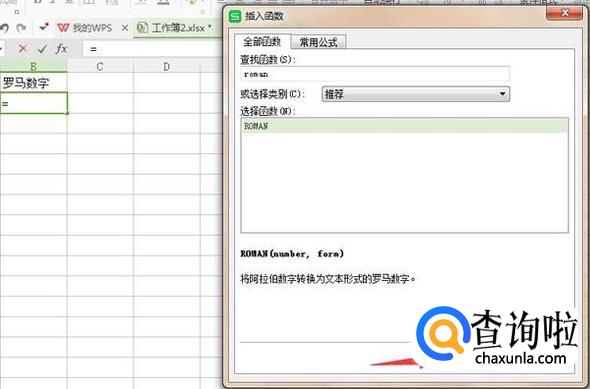 然后,在查找函数下搜索“Roman”,查找到罗马数字函数,并点击“确定”按钮。