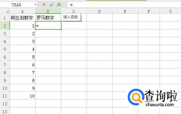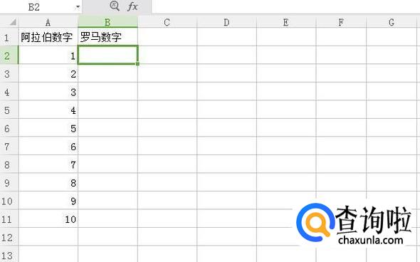 打开WPS表格,第一列是阿拉伯数字,第二列将转换出罗马数字。