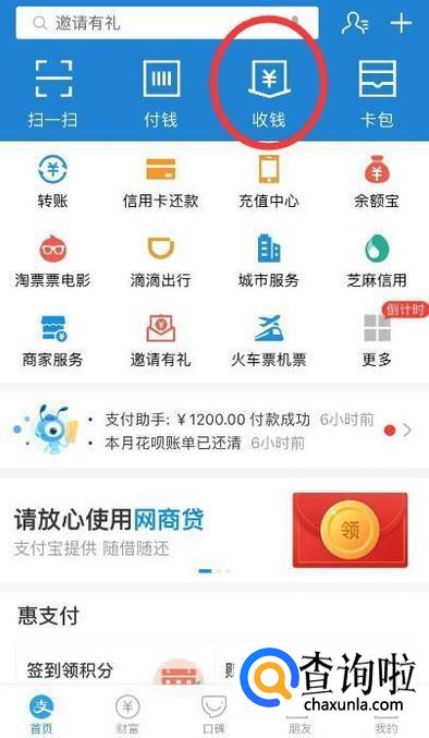 首先点击收钱。