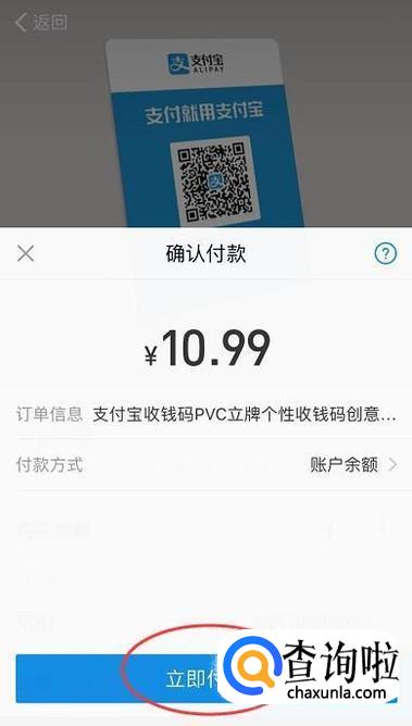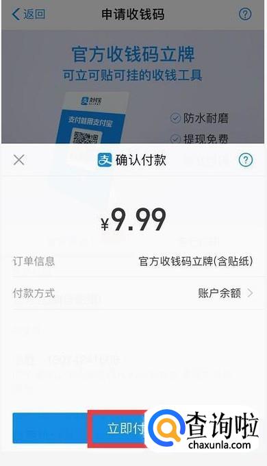 接着点击立即付款,即可收到商家收钱码。