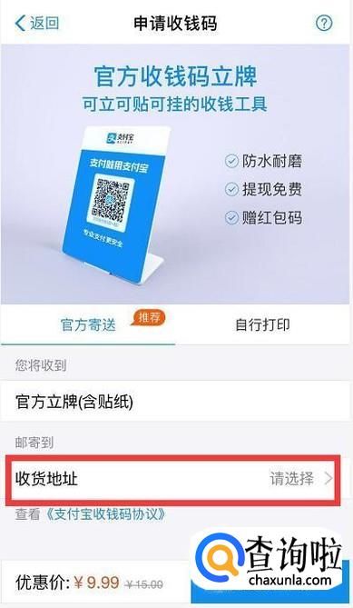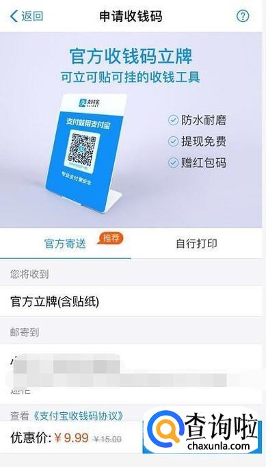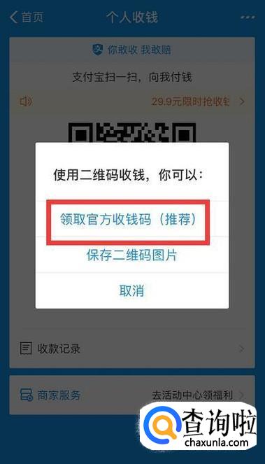 接着点击领取官方推荐的收钱码。