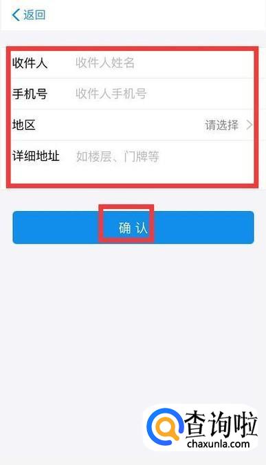然后填写收件人名字、手机号码、收货地址,再点击确定。
