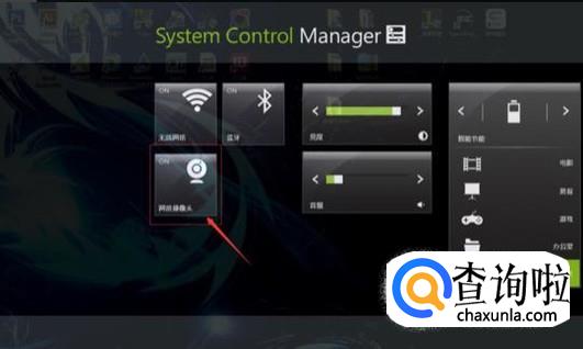 然后我们也可以在笔记本电脑的系统控制界面,找到摄像头的标志,然后把摄像头打开就可以。