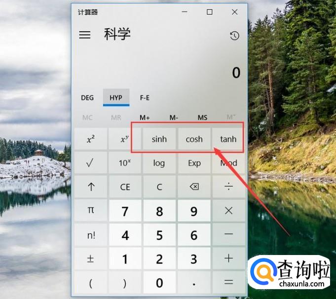 点击计算器上方的HYP按钮,我们可以将计算器模式设置为计算双曲线函数。