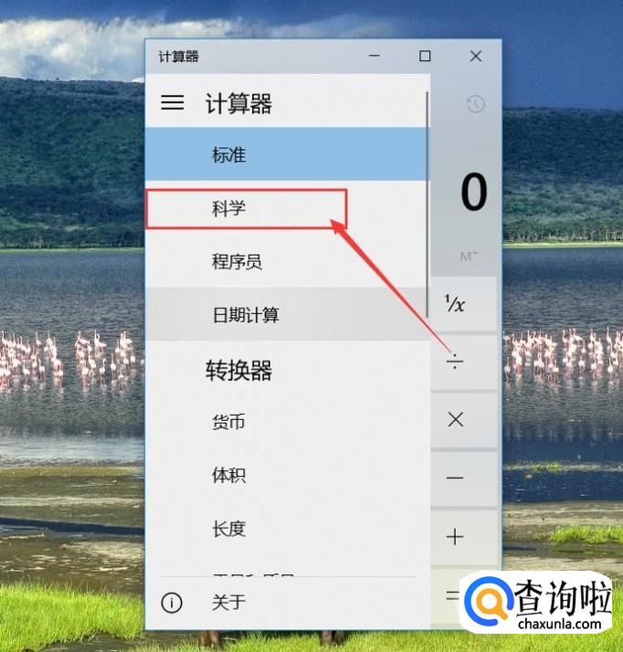 在菜单列表项目中,找到“科学”选项,即可调用科学计算器运算模式。