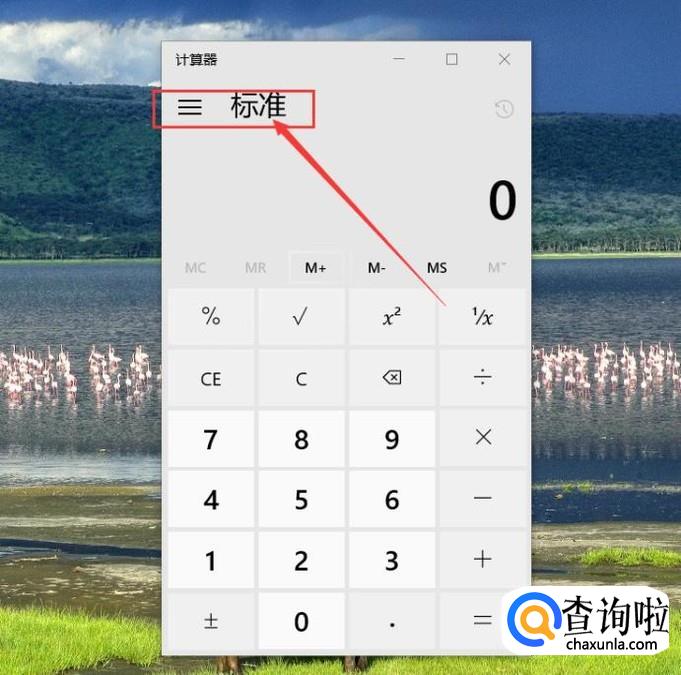 接下来,打开的计算器程序默认为基本模式,是没有函数运算的,点击左上角的“标准”菜单。