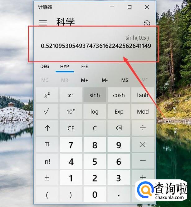可以看出计算器上方的sin、cos、tan已经自动变更为sinh、cosh和tanh,我们即可开始运算。