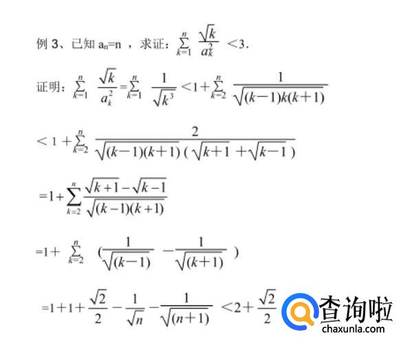 此题采用了从第三项开始拆项放缩的技巧,放缩拆项时,不一定从第一项开始,须根据具体题型分别对待,即不能放的太宽,也不能缩的太窄,真正做到恰倒好处。