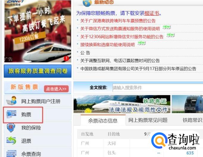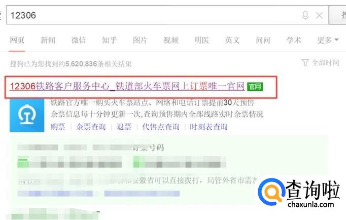 首先,我们打开我们电脑上面的浏览器,然后我们在搜索引擎中输入12306,之后我们按回车键,弹出的界面,我们点击图示中的网站;
