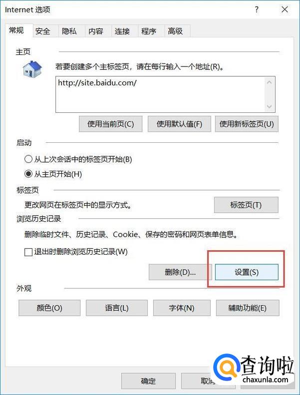 接下来,打开Internet选项设置之后,在界面中点击“设置”菜单选项。