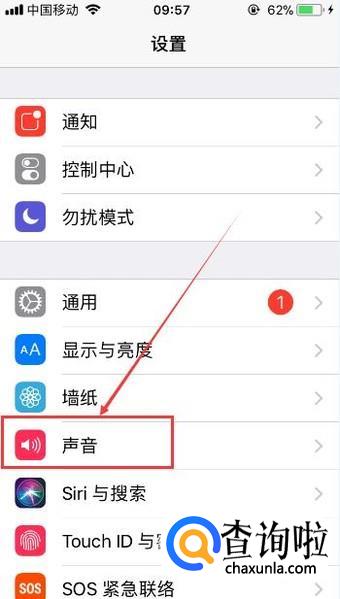 之后返回到【设置】页面,然后点击【声音】按键。
