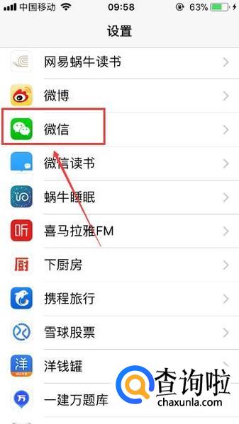 之后想要改变微信的铃音,首先进入到iphone6手机的【设置】页面,,之后下拉页面找到微信图标。