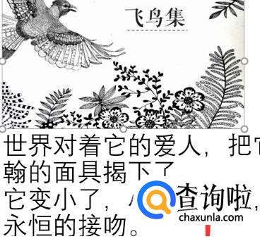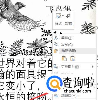 之后我们鼠标选中图片右击弹出菜单,我们在弹出的菜单里选中置于底层。按 CTRL+V 键粘贴先前复制的WORD混排内容。拖动四周的控制点进行大小调整。让文字包围在图片四周即可。也可以根据需求插入文本框进行装饰。