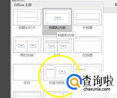 新建之后我们这里选择内容和标题的幻灯片让大家看的更仔细,除了空白其他你都可以选择,我们往内容里面先输入文字。