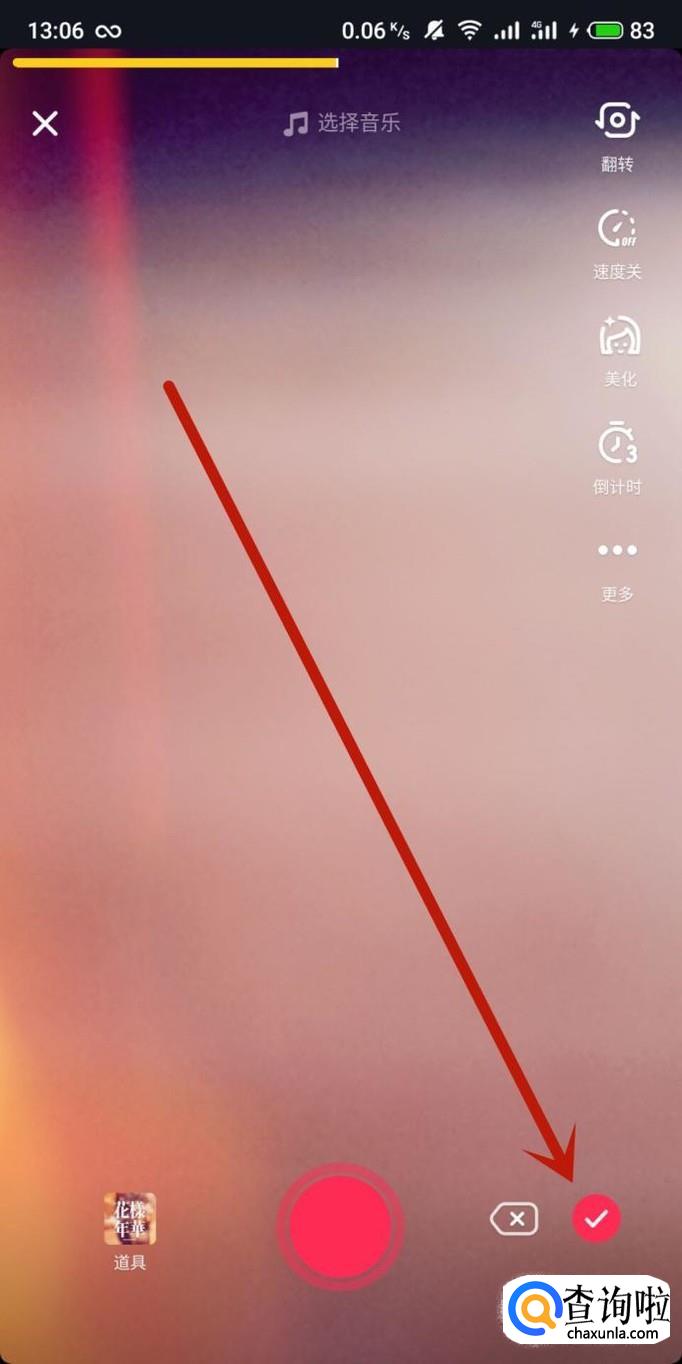 拍摄完成之后,点击图示位置的“对勾”。