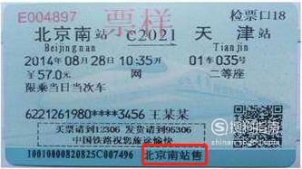 售票站:是指发售车票的车站,车票底端为“北京南站售”的火车票,即为北京南站售出的车票。