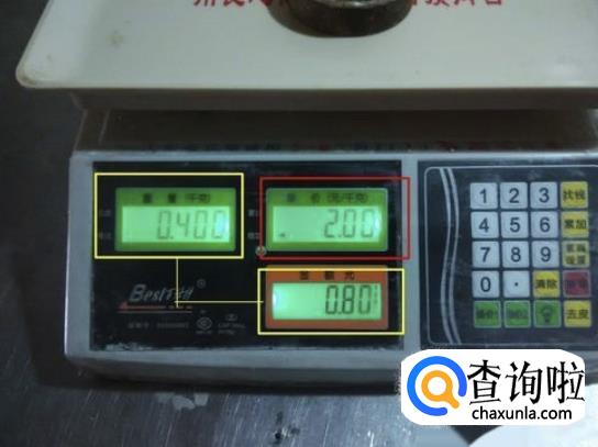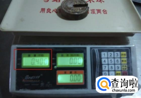 我们先将电子秤清零,然在在电子称上面放上物品,这时红方框内的重量为0.4千克,也就是0.4公斤。