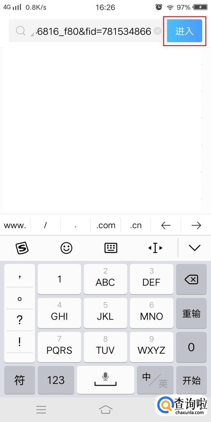 链接复制成功后,打开手机浏览器,将复制的链接粘贴到“输入网址”处,如图所示