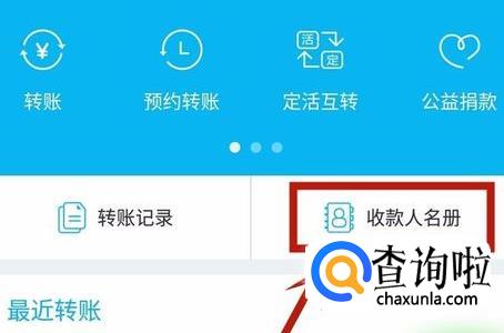 收款人名册”里会显示最近进行转账操作的联系人,下面是按联系人姓氏的首字母进行排序的完整名单,点击中想要删除的联系人,然后向左侧轻轻滑动,会出现“修改”和“删除”的按键