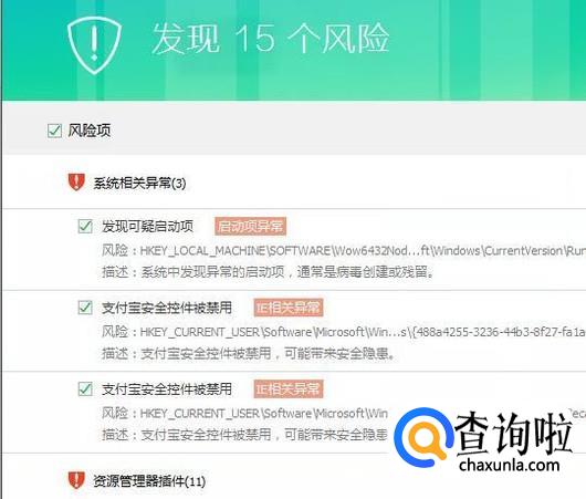 接着在这个界面我们就可以查看到我们电脑中的哪些毒和一些安全隐患了。