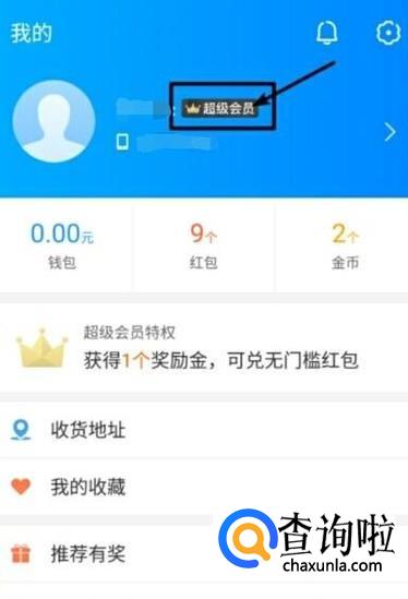 进入相应的页面后,点击头像右侧的“超级会员”。