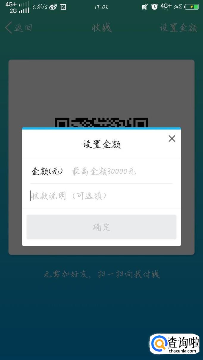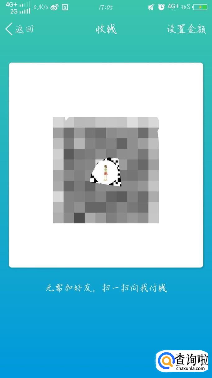 付款码中间的图片是你的QQ头像,可以截图保存到手机里。点击右上角的设置金额,可以设置收款的金额和收款说明。