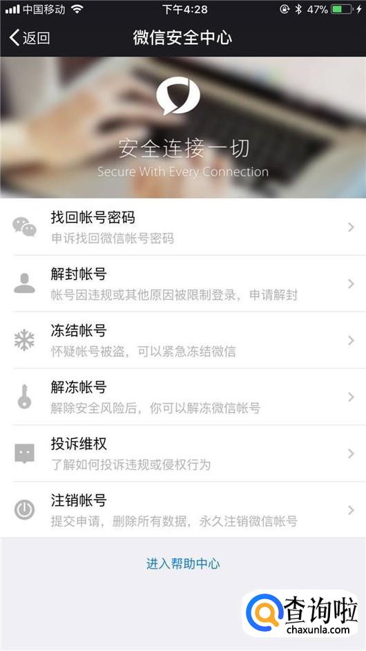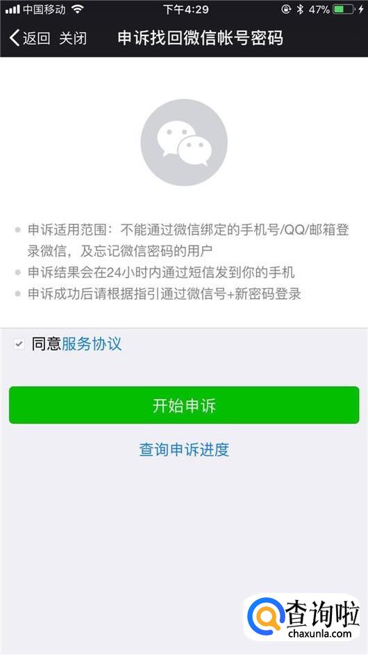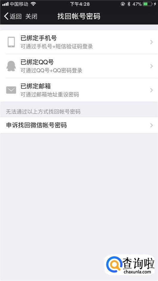 然后点击申诉找回微信账号密码,如下图所示。