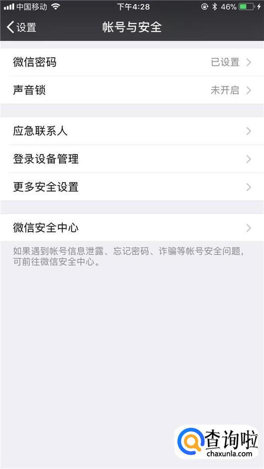 然后点击微信安全中心,如下图所示。