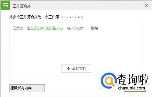 这时会弹出一个新的对话框,我们单击其中的添加文件,把需要合并的工作表都选中后,单击确定。
