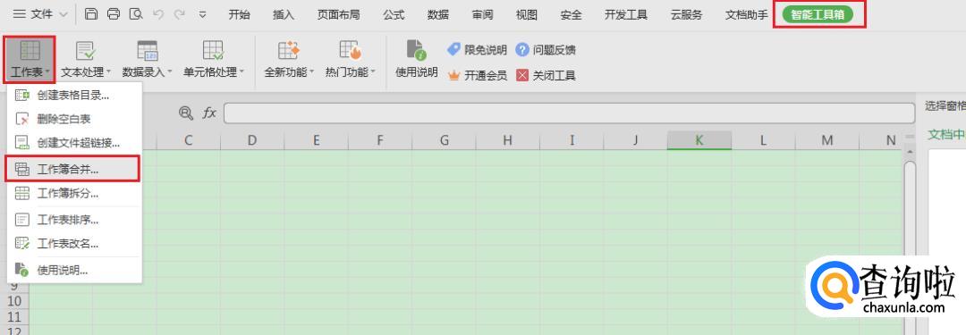 在下方选项卡单击工作簿,在下拉菜单中选择工作簿合并。