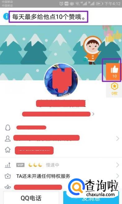 我们点击那个按钮,不要只点击一次,因为一共可以一天点赞10次,点满10次后,我们就不用再点了,这样就可以多多点赞了,之后我们每天都可以给自己的好友点10次的赞。