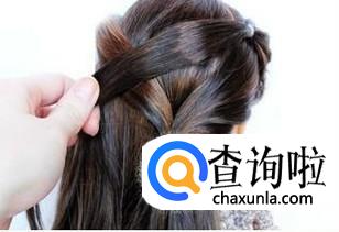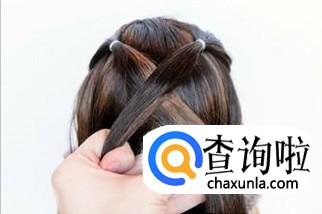 在头顶选取两撮头发扎好,并交叉放置,可用别针暂时固定左侧一搓头发