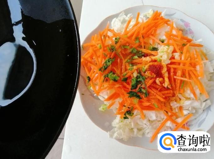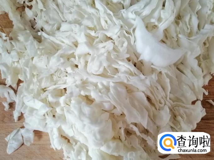 取鲜嫩的白菜心适量,用清水冲洗干净,切成细丝控水待用。白菜心用量根据吃饭人多少来定,人多的话可以适量加量。