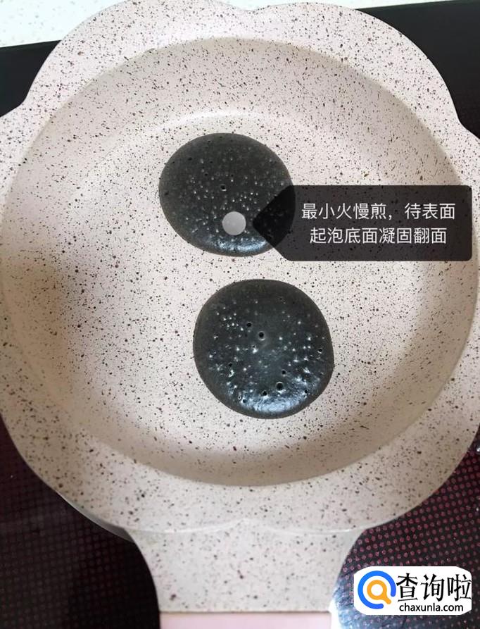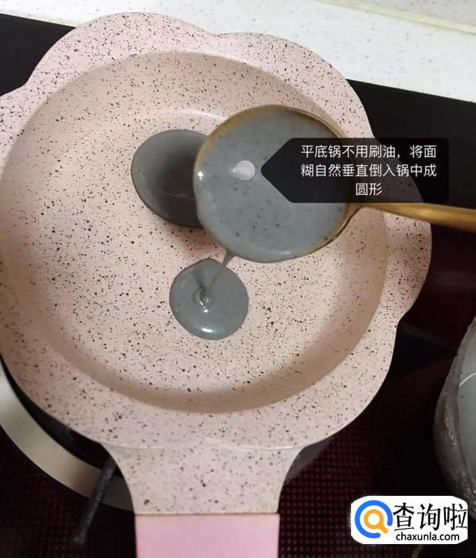 然后把面糊倒入锅中,烙成饼状,如下图所示。