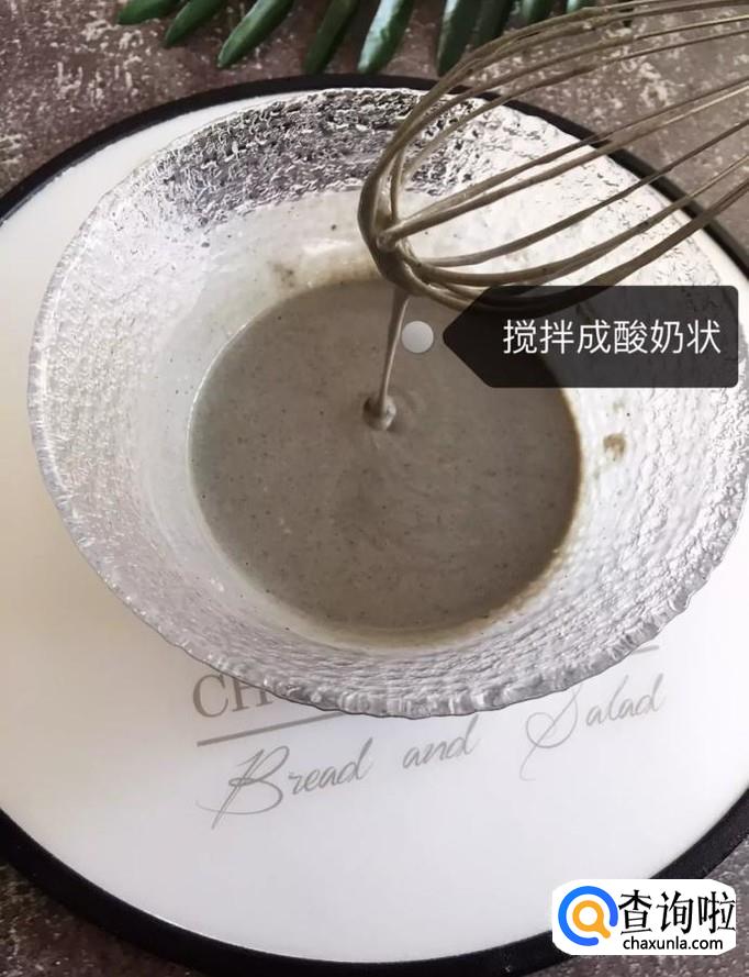 接着用打蛋器搅拌成酸奶状,如下图所示。