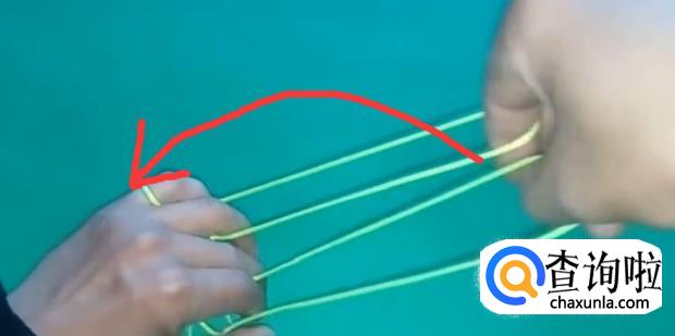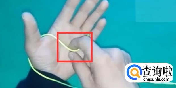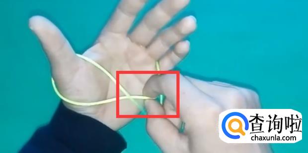 然后用右手食指勾住左手上的绳子,并向后拉。