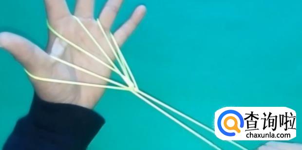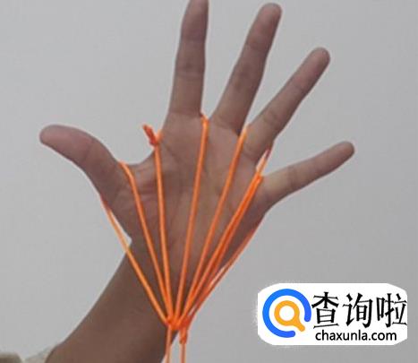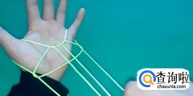然后再将左手的食指、中指、无名指放进绳子里,再将右手的绳子从左手的上面绕到左手的手背后,再松手。