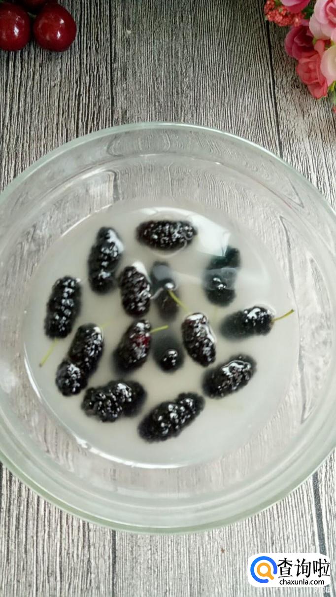 也可以试一下用淘米水清洗,淘米水偏碱性,如果桑葚打过农药,是偏酸性的,酸碱综合下,提高安全。