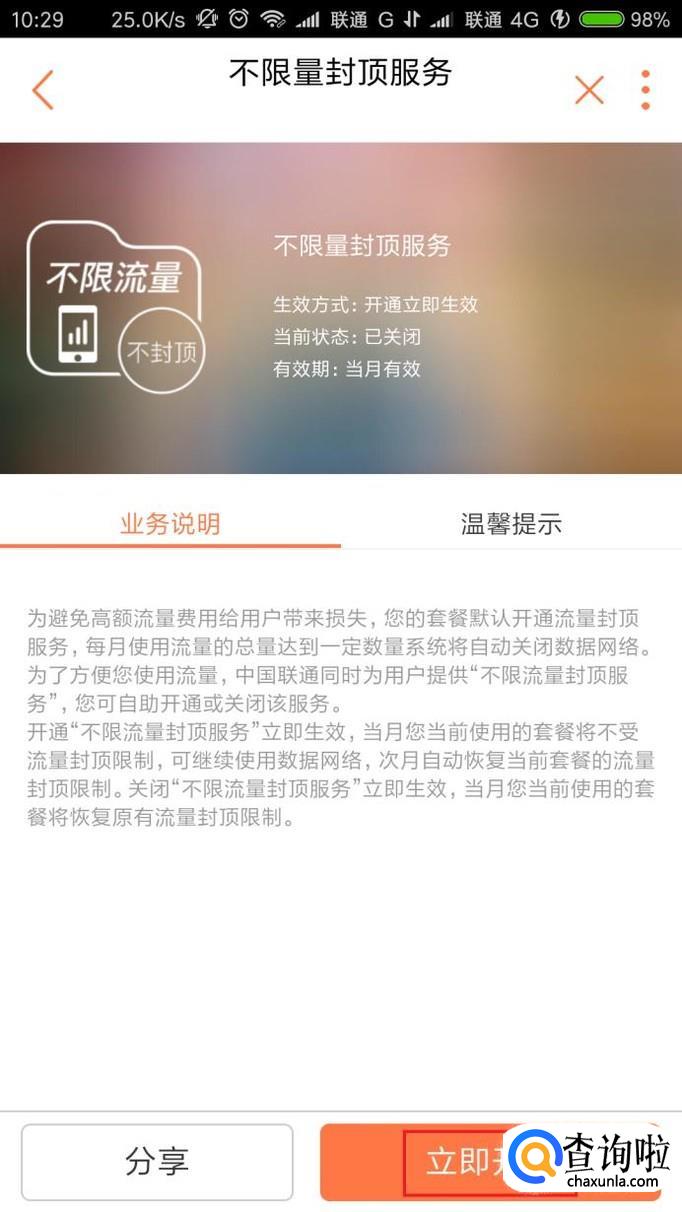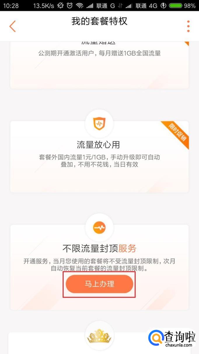 联通不限流量封顶服务该怎么开通呢?请看下面的操作步骤。