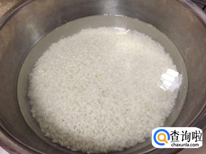 将清洗干净的糯米放在凉水中浸泡22个小时左右,期间更换2次凉水