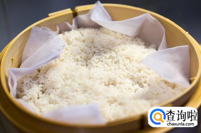 将糯米放入锅中蒸煮,如果糯米太干,可以适当的洒一些水。
